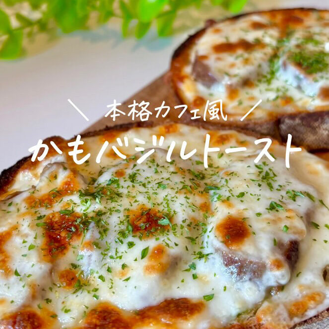 2. パンにマヨネーズとバジルを塗って 鴨を乗せる。
