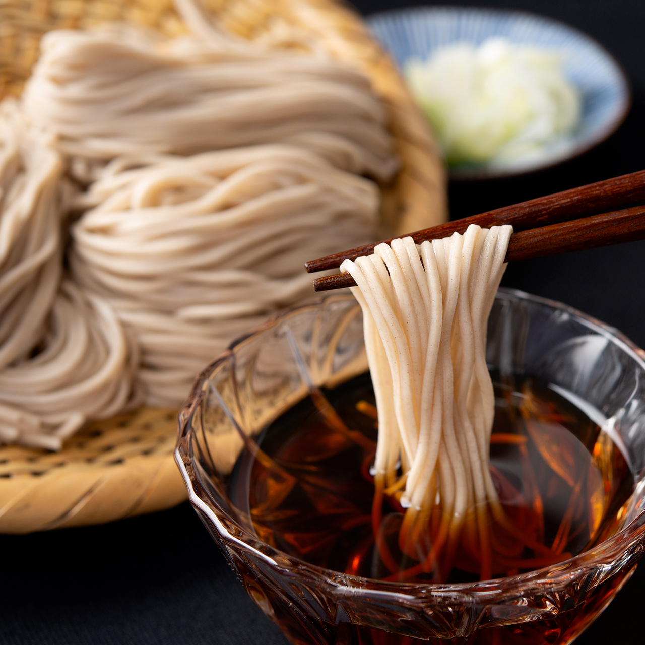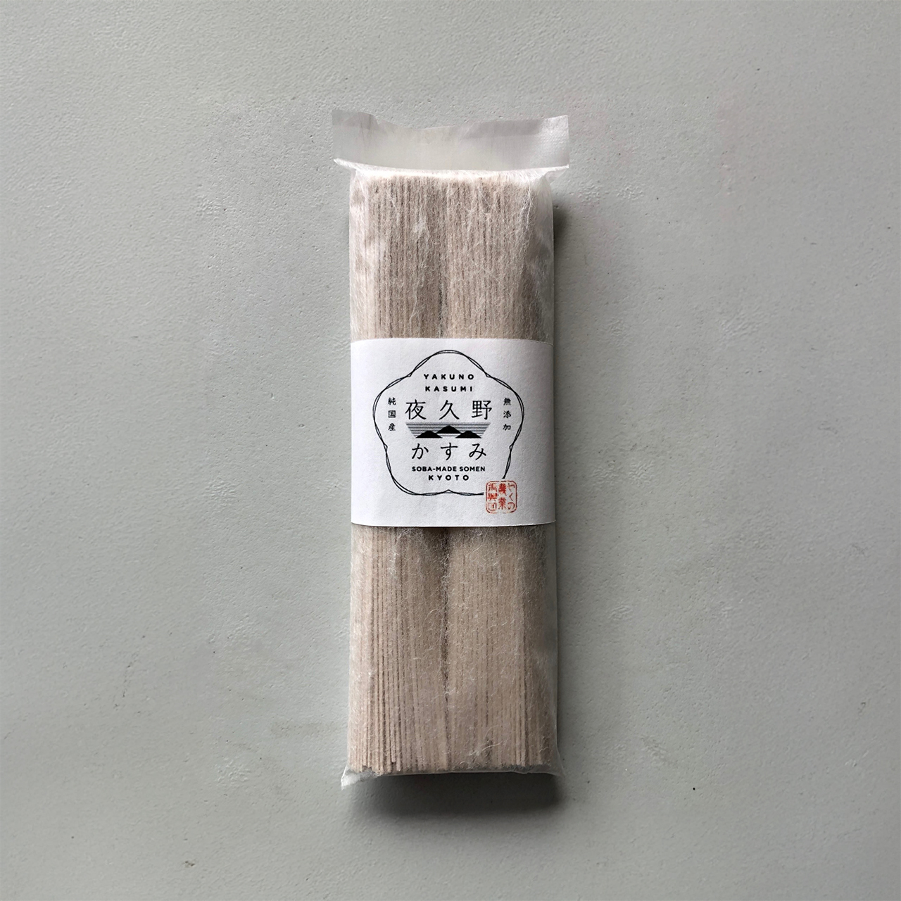 「京そば素麺 夜久野かすみ 淡」は<夜久野のそば>の復活をかけて近隣の農家と協力し、自社で生産・製粉したその良質な京都 福知山・夜久野産のそば粉、国産小麦粉、塩のみで製麺した太さわずか1.2mm極細麺です。なめらかでのど越しが良く蕎麦の香りも楽しめる、新しい麺になっております。